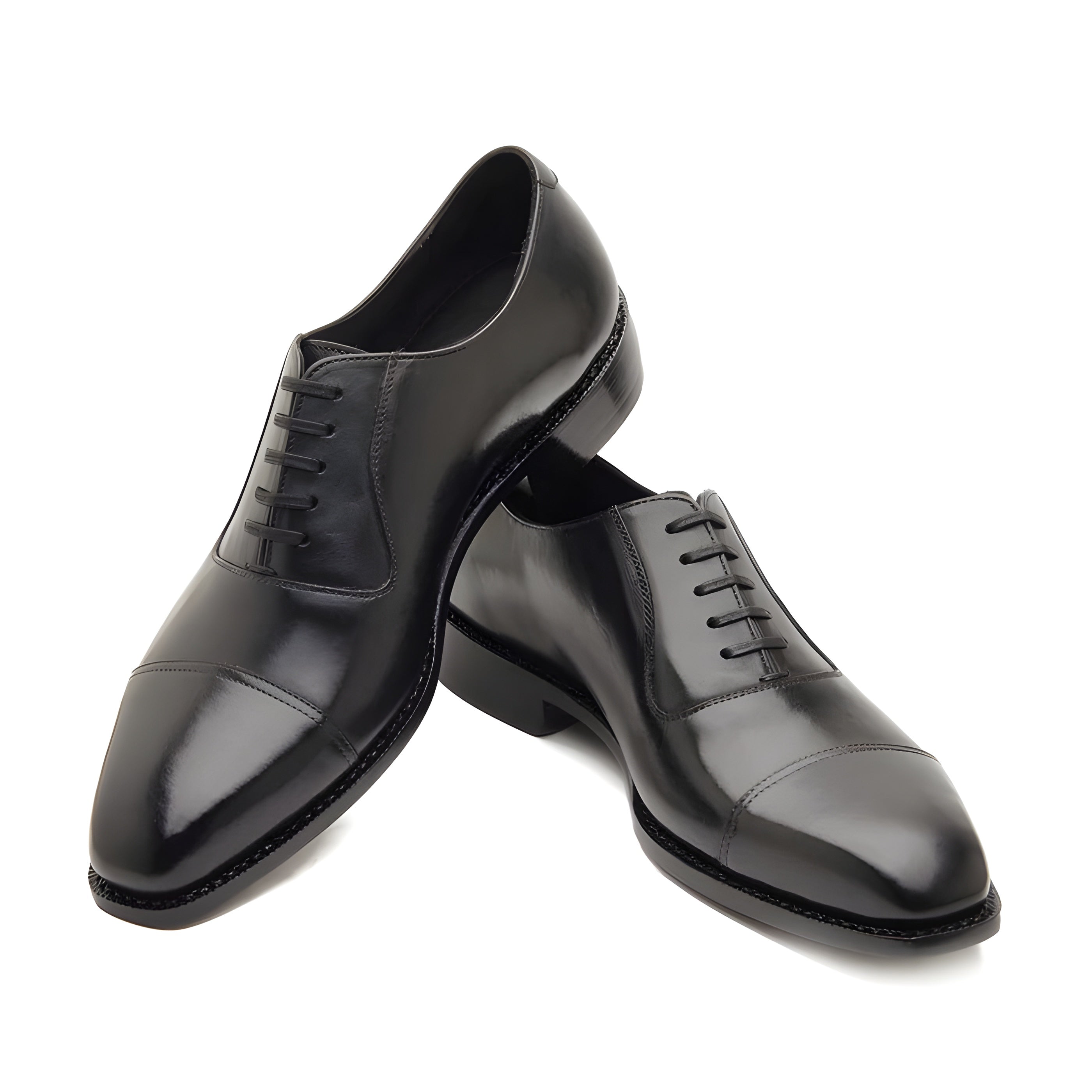 Crafted from premium full-grain leather in a polished black finish, it delivers a luxurious and professional look. The hand-welted construction ensures exceptional longevity and flexibility, allowing the shoe to mold to your foot over time. A full leather lining, cushioned insole with natural cork filler, and Italian veg-tanned leather sole provide unmatched comfort and breathability.