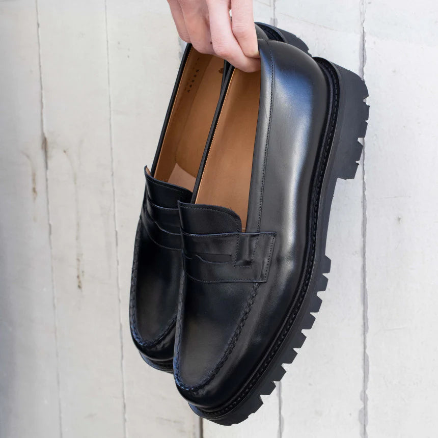 The Black Leather Belize Chunky Penny Loafers are a must-have for the modern gentleman who values style, versatility, and comfort, seamlessly blending traditional craftsmanship with a bold, fashion-forward design.