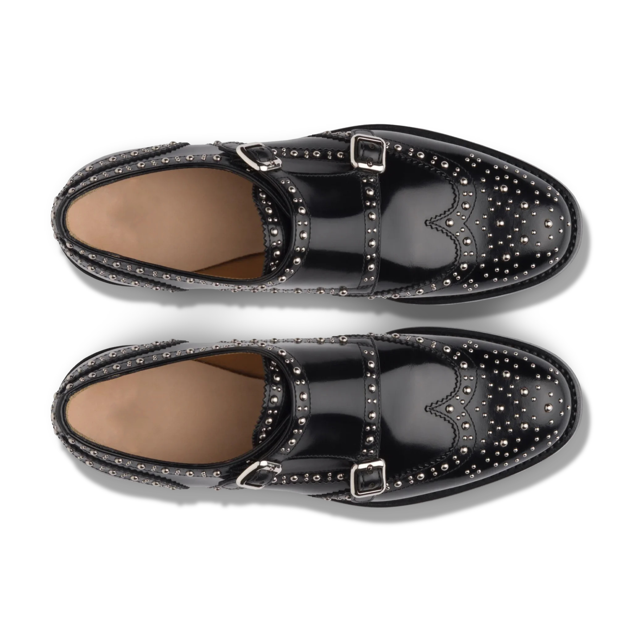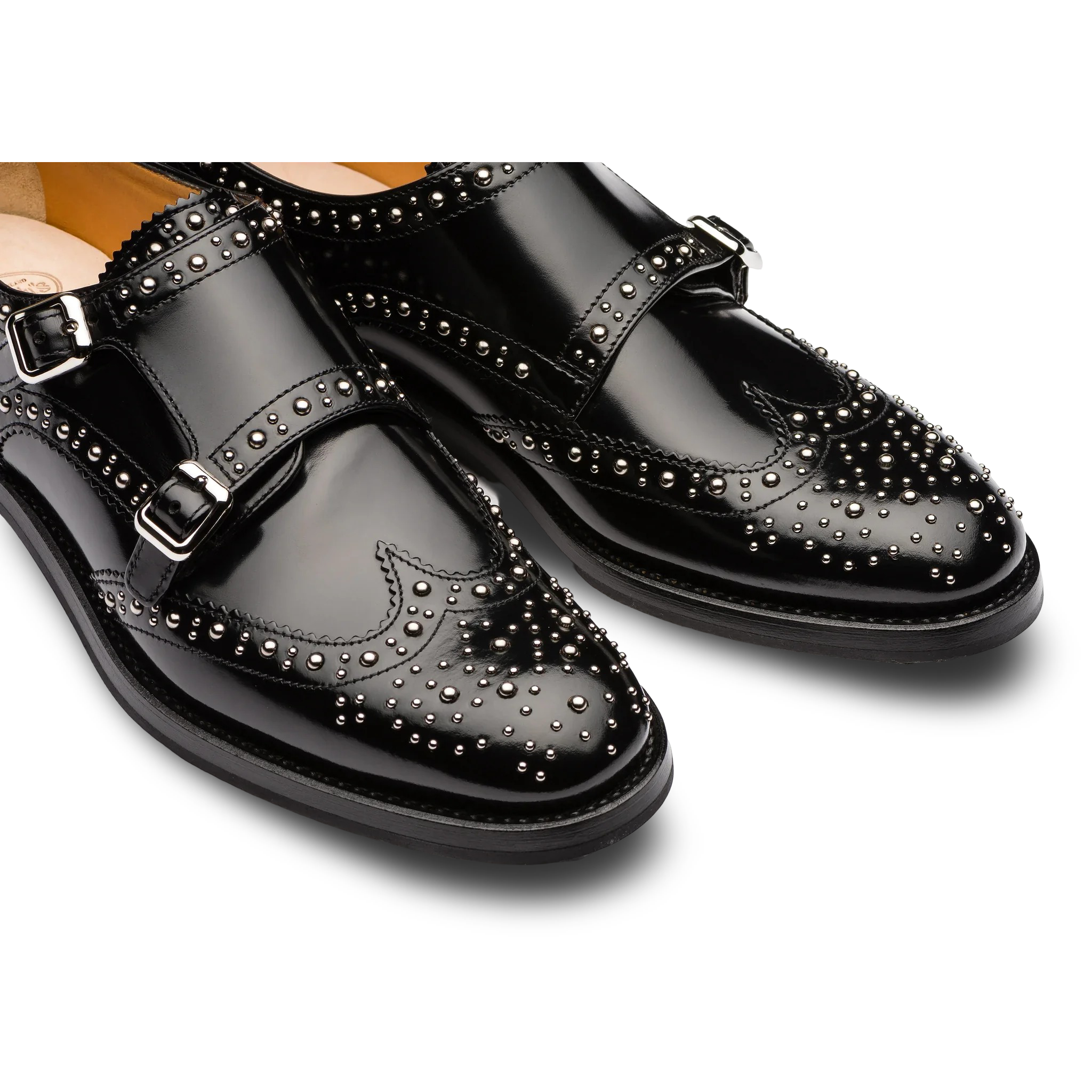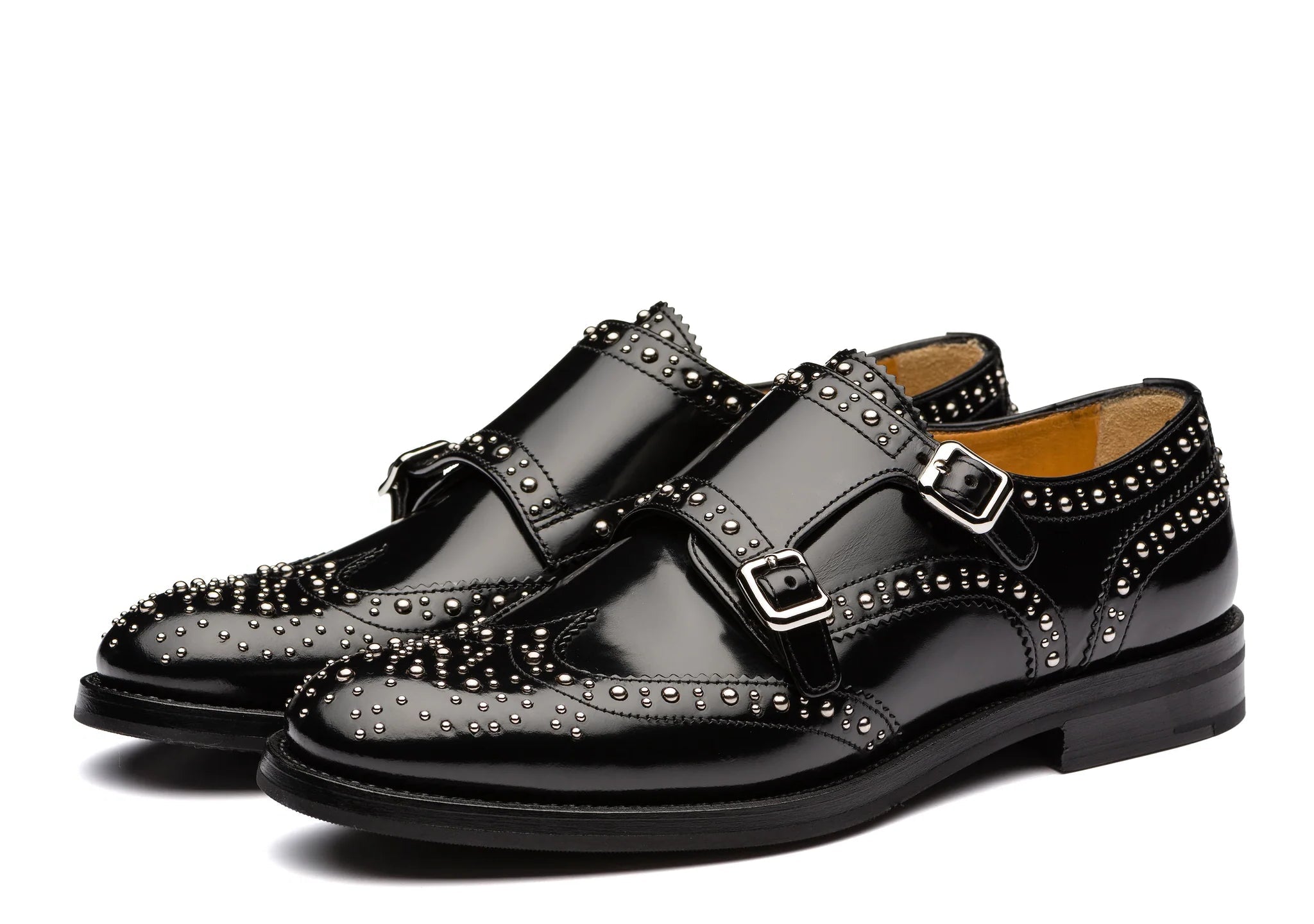 Atsabe Wingtip Monk Strap – Black Spike Studded | Bold Elegance with an Edge