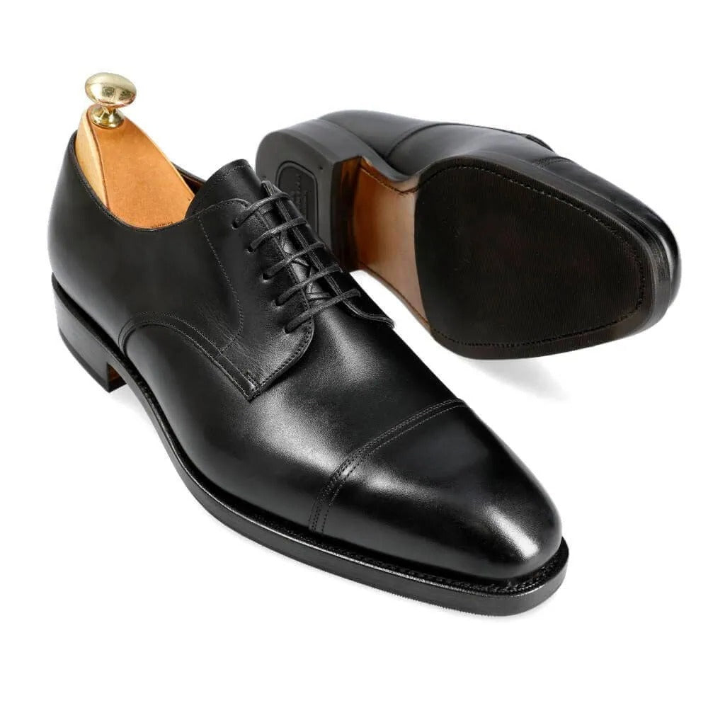Make your mark with quiet confidence. The Lexaitaliano Captoe Derby Shoes in Black Boxcalf are a symbol of timeless elegance — designed for the modern gentleman who values craftsmanship and clarity in every detail. Made from premium black Boxcalf leather, these shoes shine with a natural gloss that only improves with age. The clean captoe design adds structure and definition, while the open derby lacing offers flexibility and ease of fit.