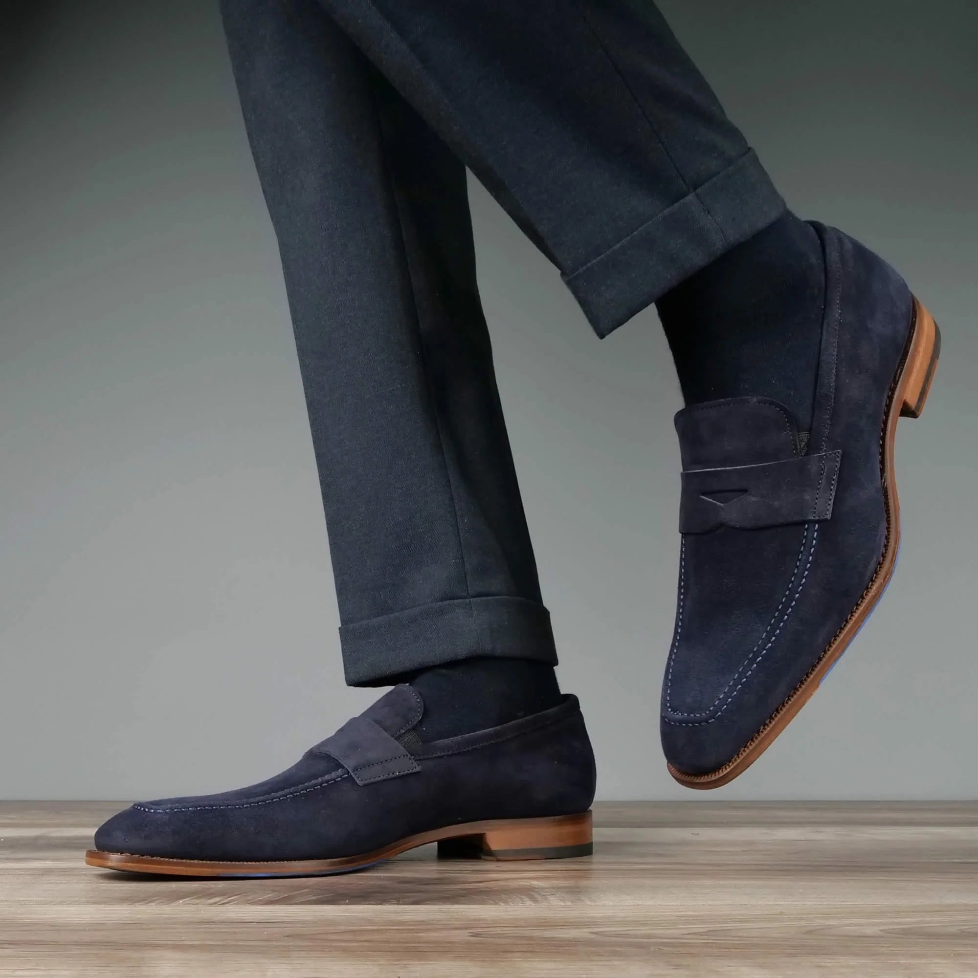 Refined Penny Loafer | Soft Suede in Elegant Navy Blue