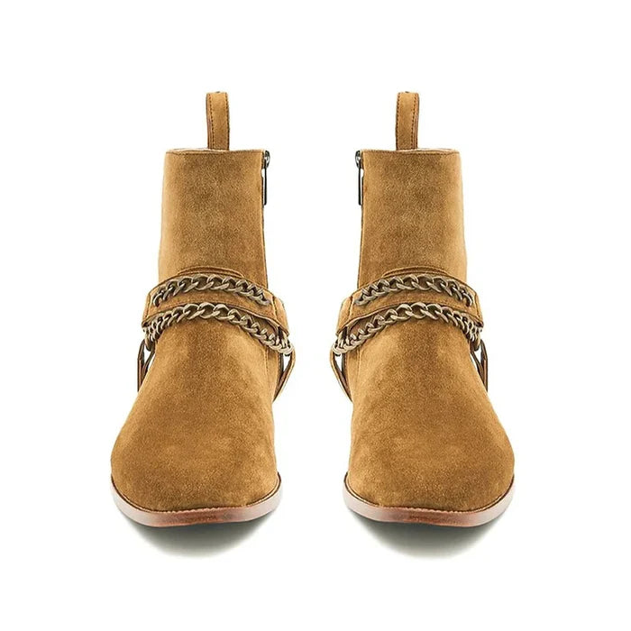 Handmade Suede Leather Jodhpur Boots with Chain – Bold Elegance with an Edge