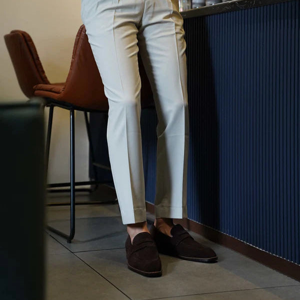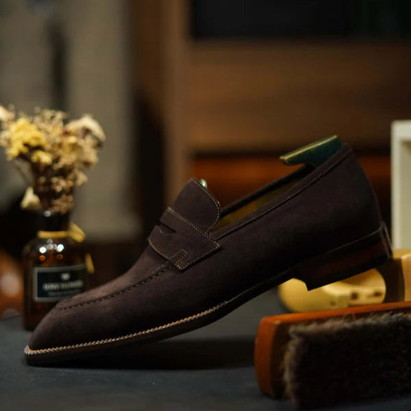 From business casual to smart weekend wear, these dark brown suede penny loafers elevate every step with understated luxury and confidence.