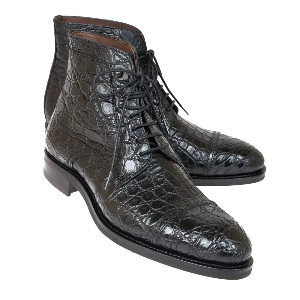 Own every room with understated power. The Lexaitaliano Ankle Boots in Black Crocodile are handcrafted from genuine black crocodile leather, offering an exotic texture and deep, inky sheen that’s impossible to ignore. Designed with a sleek ankle-height profile and subtle tapering at the toe, these boots bring a perfect balance of luxury and modern edge—whether you’re commanding the boardroom or leading the night out.