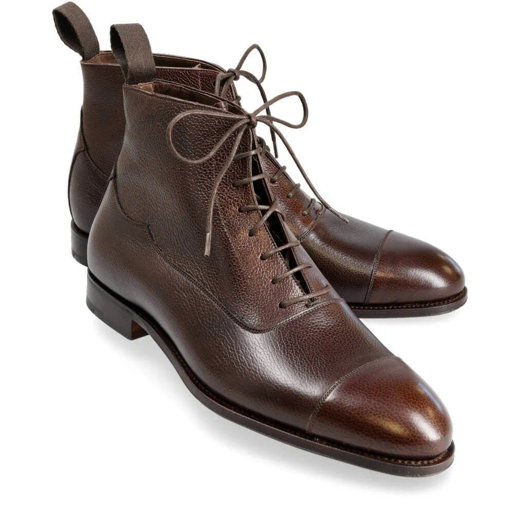 Command attention with refined strength. The Lexaitaliano Balmoral Boots in Brown Grain are crafted from premium full-grain leather, offering a textured, rugged look with polished charm. Designed with the timeless Balmoral closed-lacing structure, these boots bring a tailored silhouette to your formal and semi-formal wardrobe. The deep brown hue and detailed grain elevate your presence—subtle, strong, and unmistakably sophisticated. Built for comfort, designed for legacy.