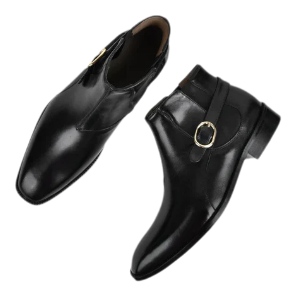 Upgrade your footwear collection with the Men’s Buckle Boots in Black, designed for those who appreciate refined style and superior craftsmanship. Made from premium black leather, these boots offer a sleek silhouette that complements both formal and casual attire.