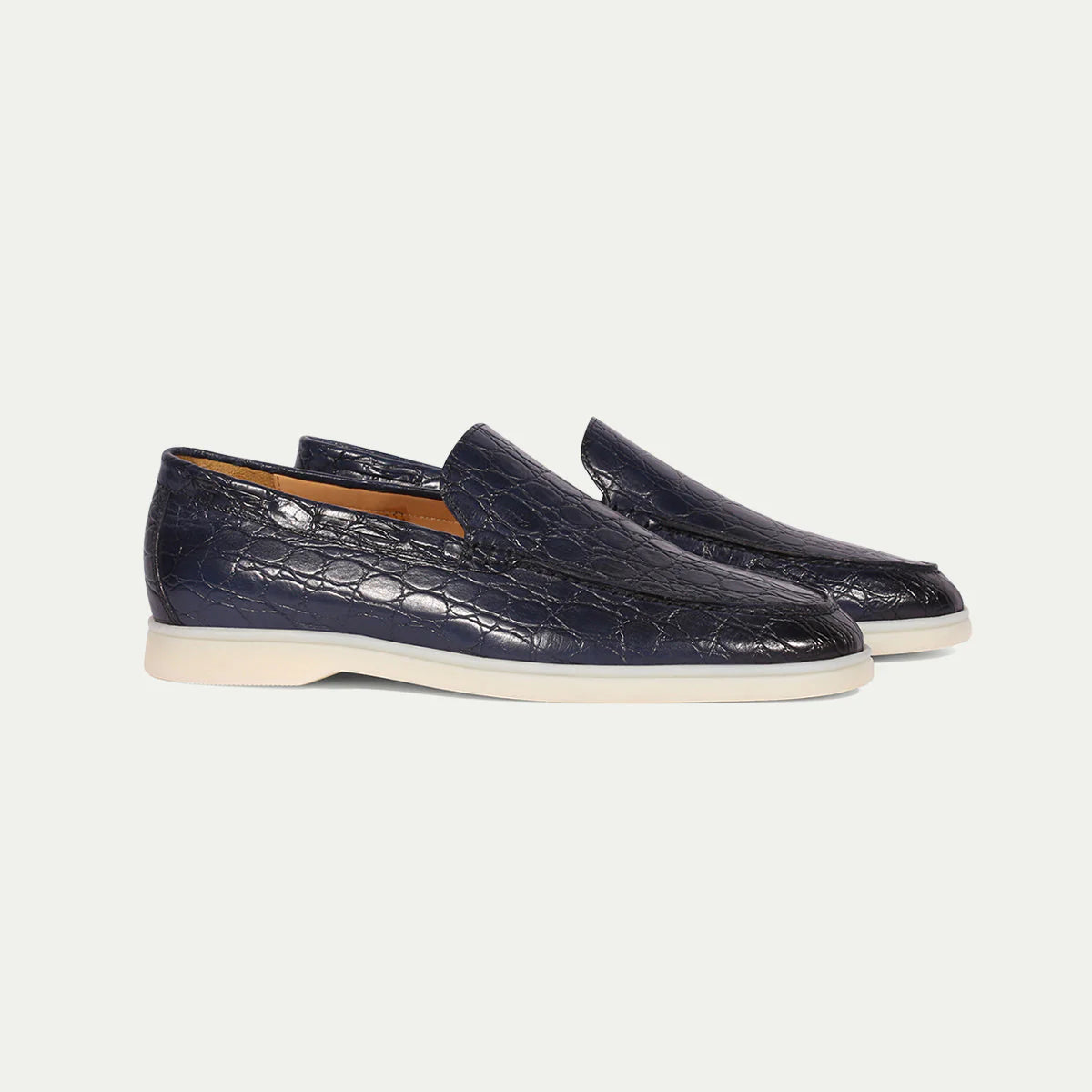 Athena Yacht Loafers – Nautical Luxury | Navy Blue Croc Print Leather Loafers for Men