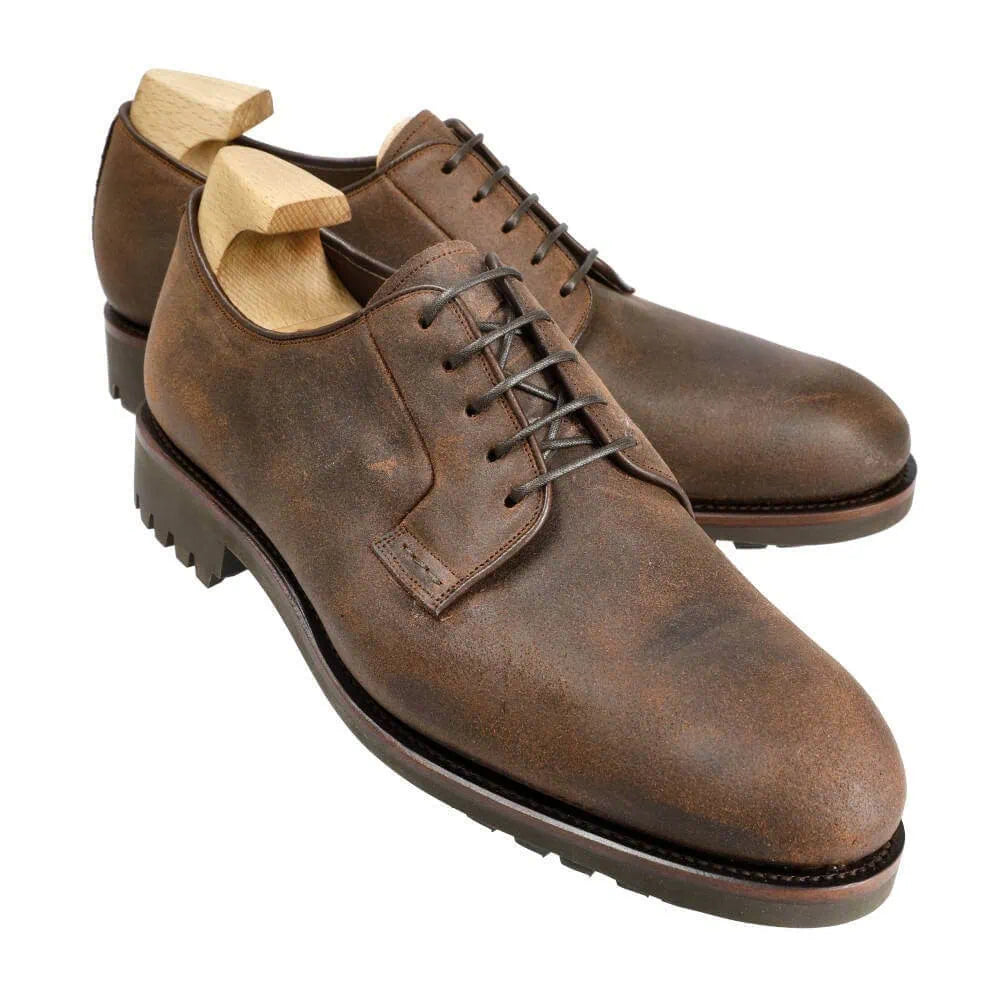 Introducing the Lexaitaliano Plain Toe Derby in Brown Waxy Commander, a perfect blend of craftsmanship and sophistication. Made from premium waxy leather, these shoes are designed to provide both style and comfort. The plain toe design offers a clean, minimalist look, making them versatile enough for both formal and semi-formal occasions. The brown waxy commander leather not only exudes luxury but also ages beautifully, enhancing its character with each wear. Ideal for the modern man who values understated elegance, this derby is built for all-day wear, featuring a cushioned insole and an anti-slip sole for added comfort and grip.