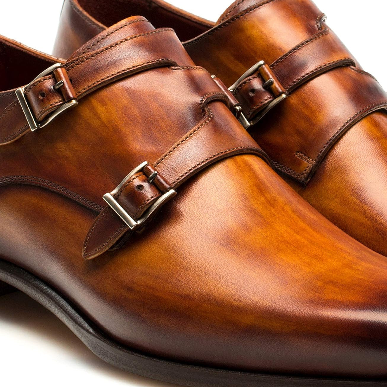 Tan Leather Leminst Monk Strap Shoes | Refined Simplicity | Versatile Sophistication